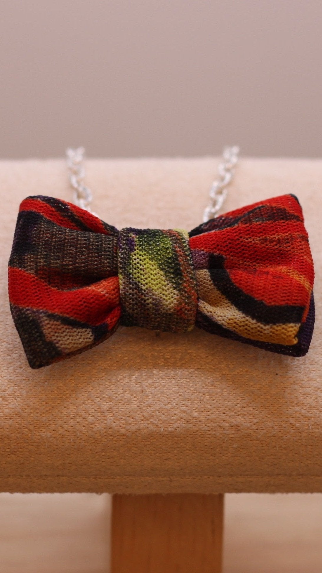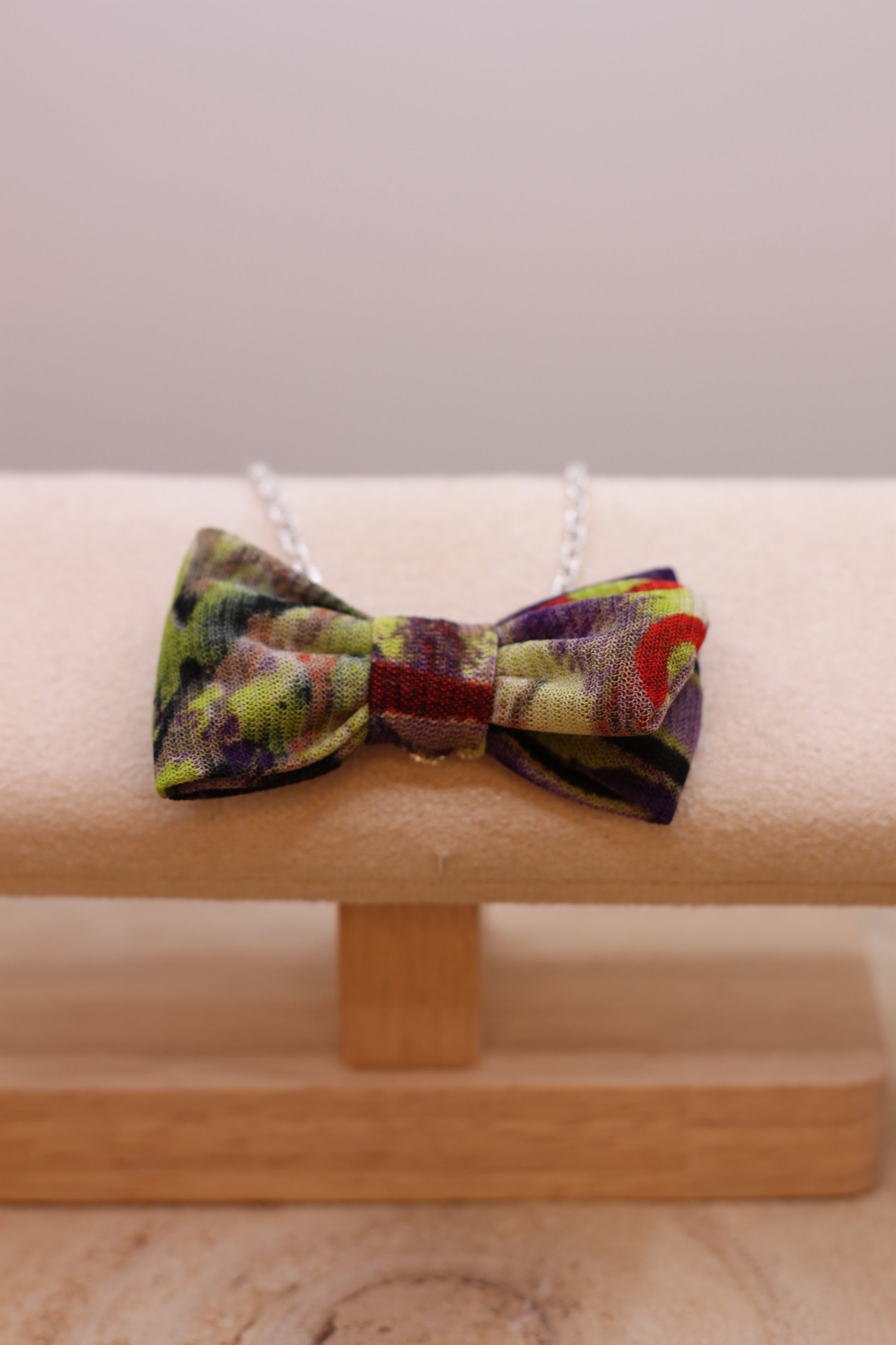 Sautoir Mini : nœud d'environ 7*4 cm monté sur un sautoir d'environ 60 cm (base dorée ou argentée au choix, en fonction du stock disponible à préciser dans la rubrique ")
