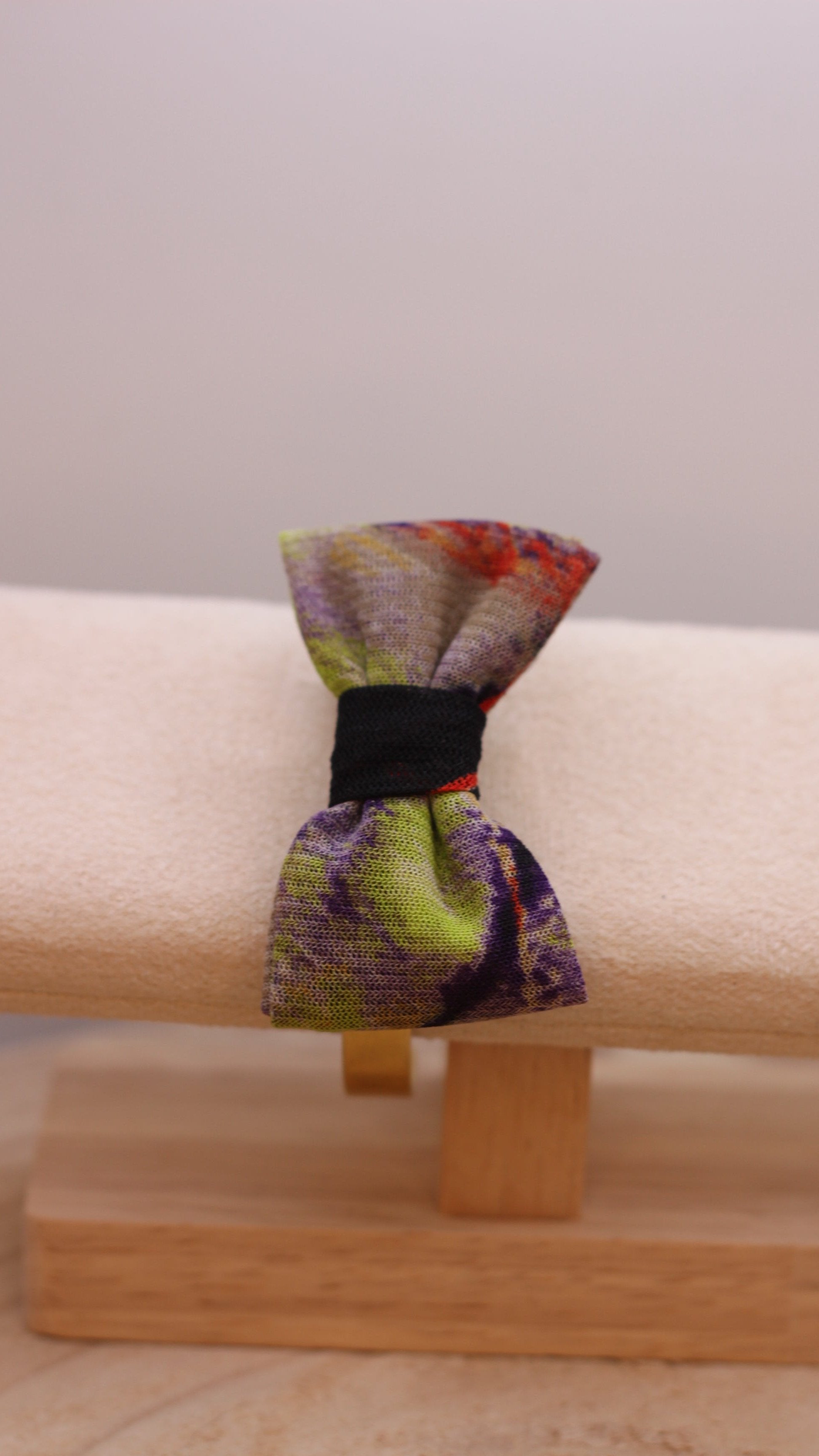 Notre gamme de nœuds "Résille Graffitis", ont été confectionnés à partir d'une fin de rouleau d'une entreprise de prêt à porter française. Nos nœuds sont audacieux et originaux puisqu'ils se transforment en barrette, nœud papillon, sautoir, bracelet ou boucles d'oreille.
